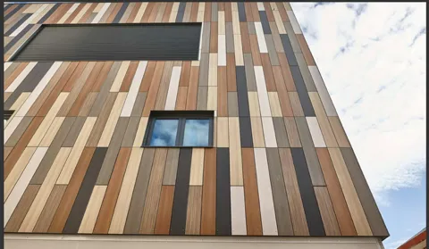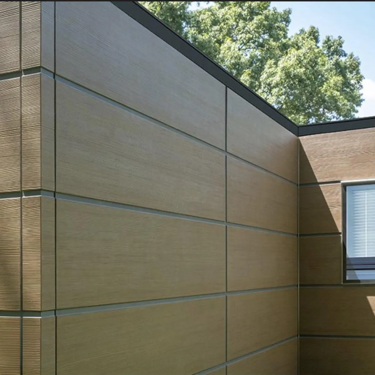 Trespa is an architectural High-Pressure Laminate (HPL) panel widely used for ventilated façades and exterior wall cladding on commercial and industrial buildings. It's considered a premium material due to its durability and aesthetic finish.